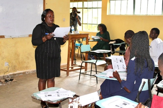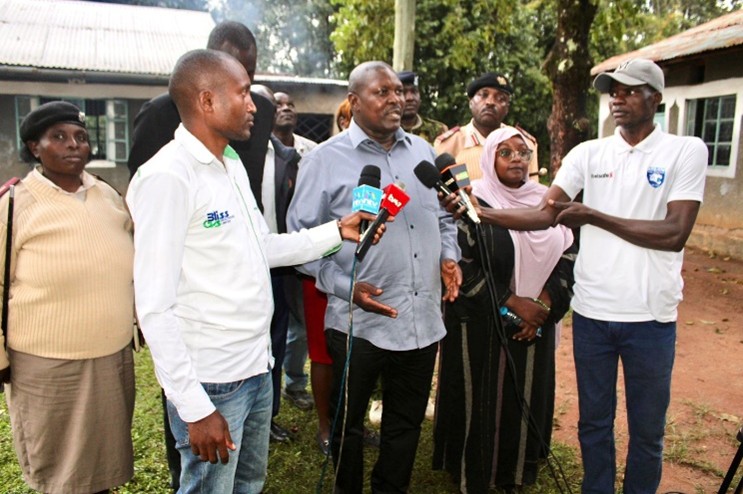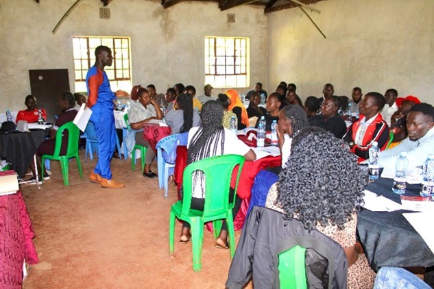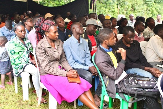 MSEA NYOTA Project Coordinator, Mr. Patrick Kamenyi addressing the beneficiaries, trainers and media at the Kibabii Vocational Training Centre in Bungoma County