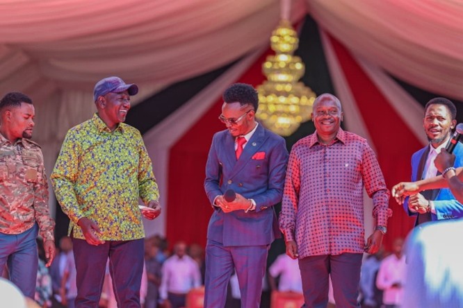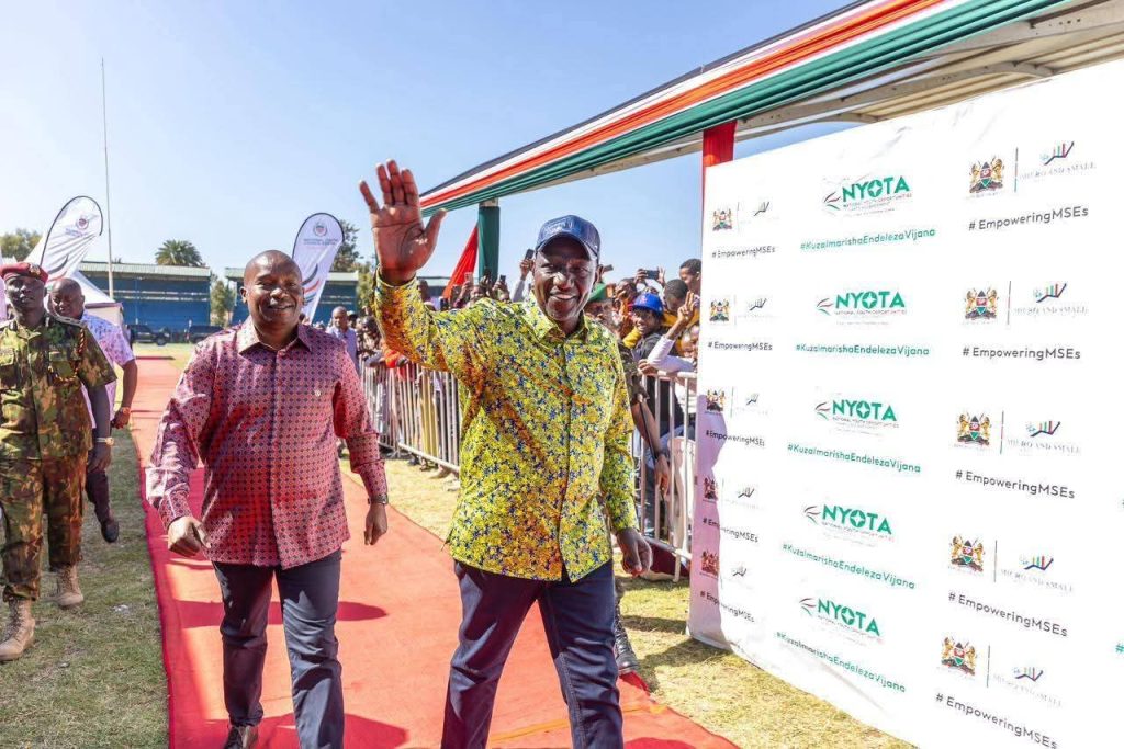 CS Wycliffe Oparanya, Ministry of Cooperatives and MSME Development welcomes President, Dr William Ruto to Machakos. (Left)