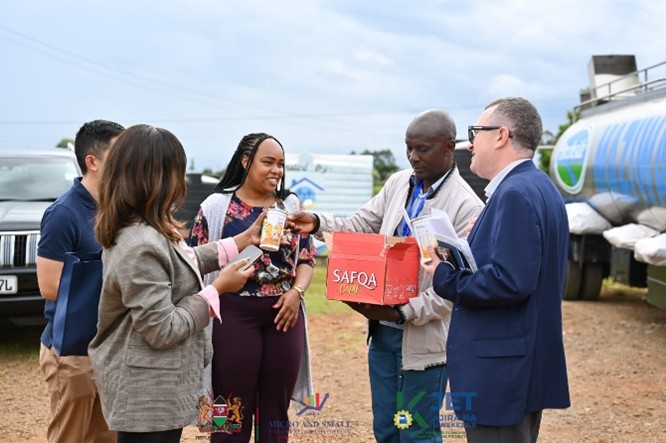 A delegation from the World Bank, led by the Task Team Leader (TTL) for the Kenya Jobs and Economic Transformation (KJET) Project, Dr. Ahmed Rostom, and accompanied by Co-TTL Leah Kiwara, Ryan Kuo, and Asta Bareisaite, conducted a monitoring visit to Kangari United and Kigoro Dairy Cooperatives in Murang’a County to assess the ongoing KJET Cohort 1 Business Development Services (BDS) classroom training.